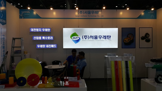 SIMTOS 2018에 참가한 서울우레탄은 다양한 산업용 우레탄 제품들을 선보였다. 그중 대전방지용 우레탄(Antistatic Poly Urethane)은 기존의 코팅 방식이나 첨가제를 사용하지 않고 반응형 타입을 사용해, 균일한 체적 및 표면저항을 유지하면서 다양한 색상 및 경도의 제품 성형이 가능하다. 또한 우레탄 자체 특성인 내마모성, 경도, 치수 안정성 등을 유지하고 있다.