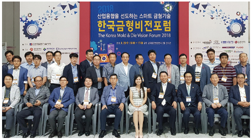 ▲ 한국금형비전포럼 2018에 모인 각 분야 최고의 금형기술전문가들이 단체사진을 찍고 있다.