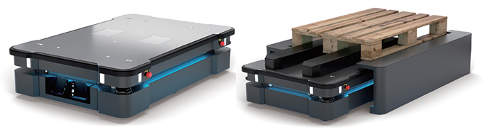▲ 신제품 MiR 500 ▲ MiR 500 리프팅 옵션 주행 모습