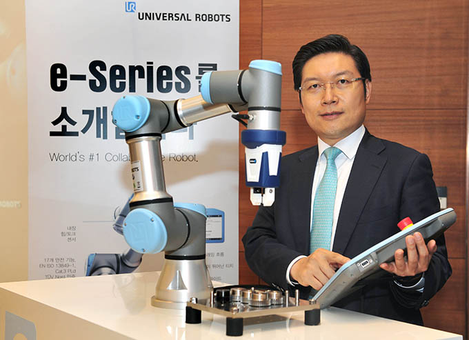 ▲ 유니버설로봇 이용상 한국 영업 본부장이 신제품 e-시리즈를