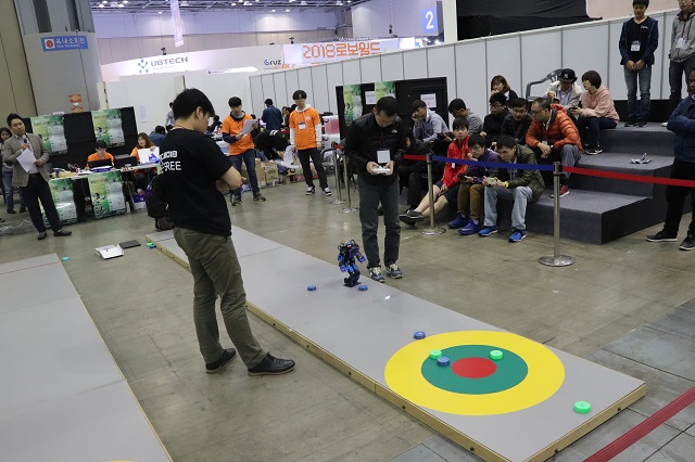 평창동계올림픽에서 온 국민을 즐겁게 했던 컬링 경기도 진행됐다. 로봇들은 스톤대신 사용된 공을 발로 차 원하는 위치까지 이동시켰다. 실제 컬링처럼 상대방이 원하는 위치에 공을 놓지 못하도록 계산된 경기력이 필요했다.