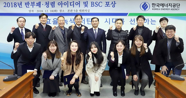 한국에너지공단(이사장 김창섭) 임상경 상임감사와 감사실은 지난 12월 18일 본사 5층 대회의실에서 ‘2018 반부패·청렴 아이디어 및 BSC 우수부서 포상’ 시상식을 가졌다.