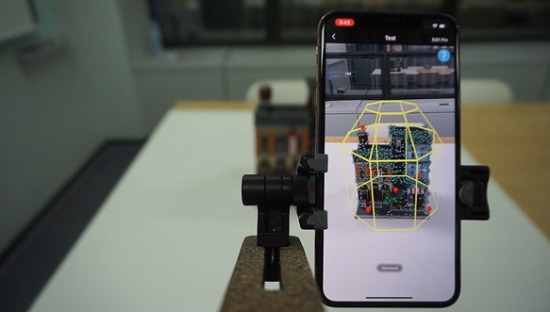 바운딩 박스는 애플의 AR Kit에서도 확인할 수 있는데, 맥스트는 사용자가 물체를 스캔할 때 카메라와 물체 사이에 기울기를 가진다는 점에 착안하여 대상의 윗면까지 손쉽게 스캔할 수 있도록 기울기가 있는 팔각형 형태로 구성하였다. 그리고 핀(Pin)기능이 추가되어 3D 맵 제작과정에서 추후 증강될 콘텐츠의 위치를 미리 표시해둘 수도 있다.