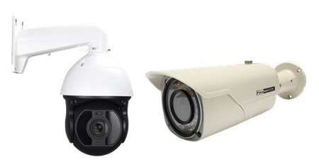 ▲ 초 저조도 컬러 피티지 카메라 ‘FW8709-FNR’(왼쪽)과 검지용 블릿 카메라 ‘FW7930-HSM’