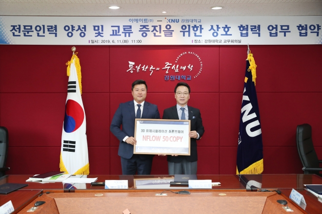 이날 협약에 따라 이에이트는 10억 원 상당의 전산유체역학(Computational Fluids Dynamics, CFD) 소프트웨어인 NFLOW를 기증하고, 강원대학교의 전문 인력 양성과 기술 및 R&D 전문 인력 양성, 그리고 인적자원 인큐베이팅을 통한 취업 지원 등의 혜택을 제공할 예정이다.
