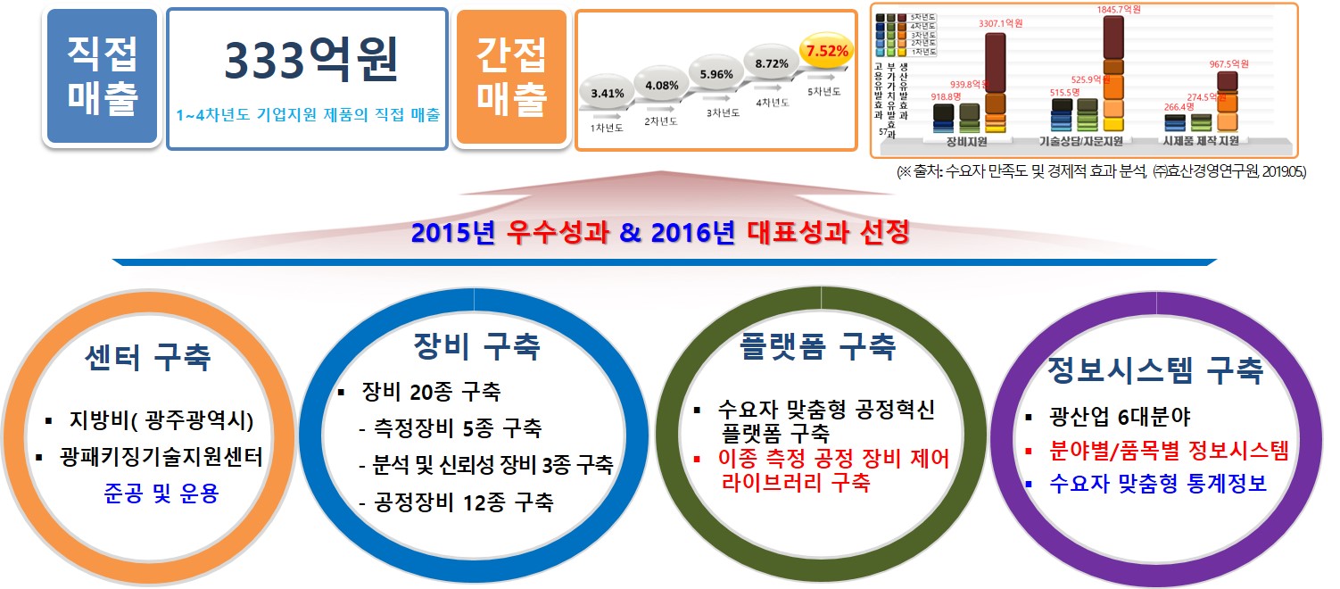 아울러 장비공동활용, 시제품제작, 기술경영 상담자문 등을 지원함으로써 광융합·전자부품·센서모듈 관련 기업의 고용유발효과 1,701명, 부가가치유발효과 1,740억 원, 생산유발효과 6,120억 원 달성했다.