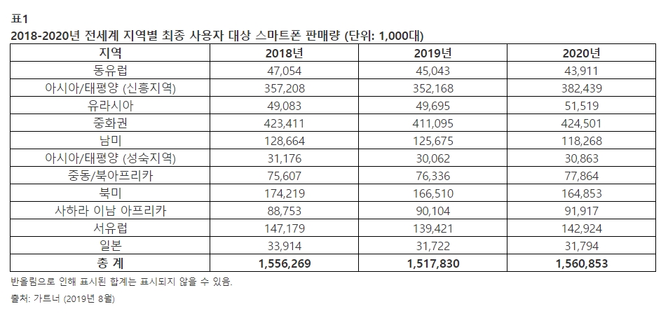 세계적인 IT 자문기관 가트너(Gartner)가 2019년 전세계 스마트폰 판매량 전망을 2일 발표했다.