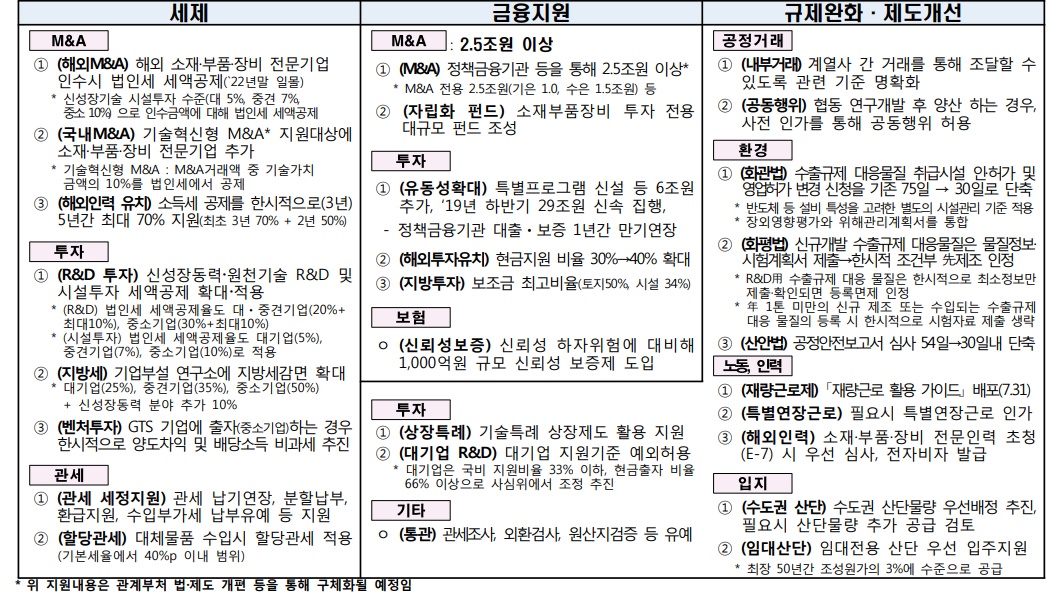 이번 대책은 소재·부품·장비산업에 예산과 금융, 세제, 입지, 규제특례 등 국가자원과 역량을 집중한다는데서 주목된다.