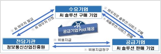 이 사업은 기업당 최대 3억원까지 지원할 예정이며, AI 기술을 적용하고자 하는 기업(이하 ’수요기업‘)이 AI 솔루션이나 서비스를 제공하는 기업(이하 ’공급기업‘)의 제품을 구매하는 방식으로 추진된다.