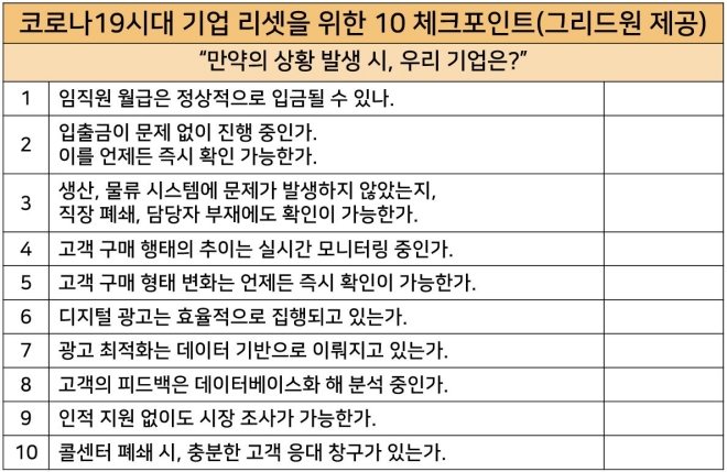 ▲그리드원이 공개한 기업리셋을 위한 10 체크포인트