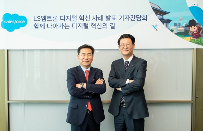 ▲세일즈포스 코리아 손부한 대표(좌), LS엠트론 영업총괄 이상민 이사(우)