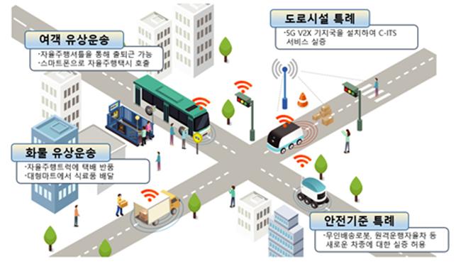 자율주행 민간기업은 해당 지구에서 여객·화물 유상운송 허용, 임시운행허가 시 자동차 안전기준 면제, 비도로관리청의 도로 공사·관리 등의 다양한 특례를 부여받아, 실제 요금을 받으면서 사업운영 관점에서 실증해보고, 사업화까지 검토해 볼 수 있다.