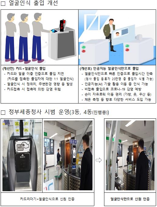 현재는 얼굴 인식과 공무원증 인증을 함께 하는 방식으로 출입관리가 이뤄지고 있으나 새 시스템에서는 AI 얼굴인식만으로 본인확인이 가능해진다.