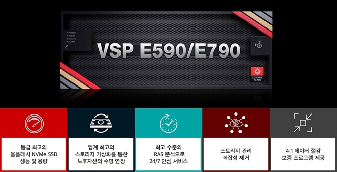 효성인포는 이런 요구사항을 해결하기 위해 NVMe 미드레인지 올플래시 모델인 VSP E590 및 E790 제품을 통해 고성능의 NVMe 스토리지를 활용할 수 있도록 포트폴리오를 강화했다.