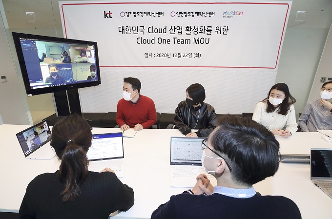 KT(대표이사 구현모)는 ‘클라우드 원팀(Cloud One Team)’에 한글과컴퓨터, 경기창조경제혁신센터, 인천창조경제혁신센터가 합류해 국내 클라우드 생태계 경쟁력 강화에 협력하기로 했다고 지난 22일 밝혔다.