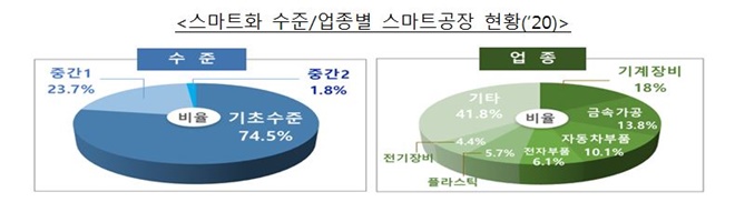 스마트공장은 기계장비 18.0%, 자동차 부품 10.1%, 금속가공 13.8%, 전자부품 6.1% 등 주요 업종 중심으로 보급됐다.