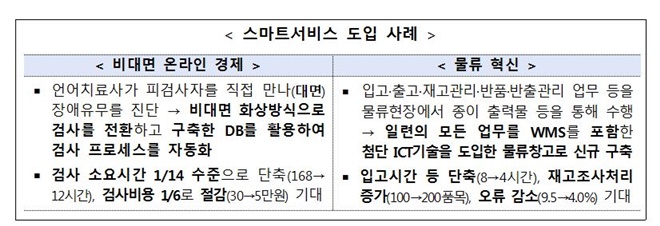 아울러 우수사례를 발굴해 ‘혁신사례 성과발표회’를 갖고 성과가 탁월한 기업에는 포상도 해 사업 참여기업들과 함께 스마트서비스 확산을 위한 노력도 펼쳐 나갈 계획이다.