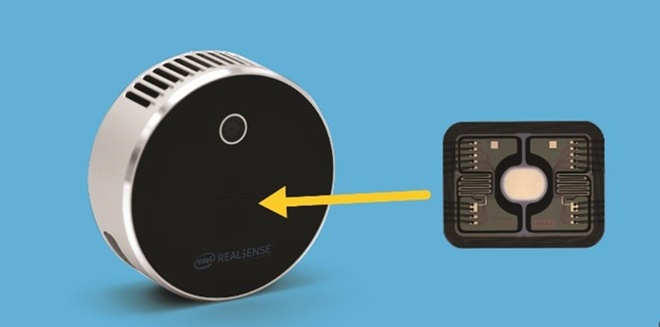 ST의 소형 크기 마이크로 미러는 인텔 리얼센스(RealSense) 라이다 카메라 L515에 내장돼 라이다 카메라를 하키공 크기(직경 61mm x 높이 26mm)로 구현한다.