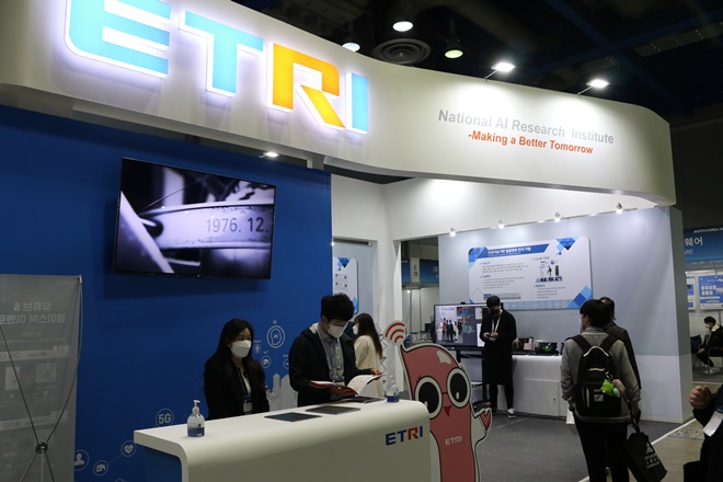 ▲전시회에 참가한 ETRI 부스 전경(출처 : 함수미 기자)