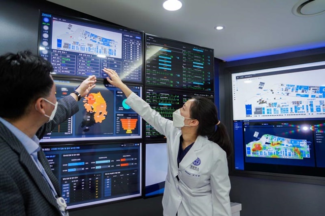 양사는 실시간 위치 추적 시스템(RTLS)과 방역로봇의 내원객 밀집도 분석 기능을 결합해 병원 내 감염 사고 및 환자 이탈 발생 시 환자의 위치를 신속하게 파악해 사회적 거리두기 음성 안내 시스템이 효과적으로 작동할 수 있도록 시스템을 구축했다.