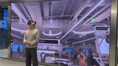 이날 또 다른 핵심은 애플 비전 프로의 운영체제(OS)인 비전OS(VisionOS) 기반 애플리케이션 ‘3D라이브(3DLive)’이다. 3D익스피리언스에서 구축한 버추얼 트윈 모델을 실제 공간 위에 1:1 크기로 띄워 놓고, 각 조직·담당자가 같은 화면을 보며 동시에 검토·협업할 수 있게 해주는 엔터프라이즈 애플리케이션의 모습이다.