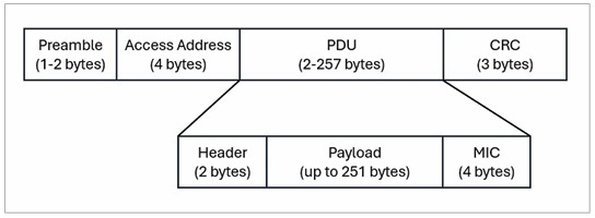 · PDU (2~257바이트) – 헤더, 페이로드, MIC(Message Integrity Check)로 구성.
