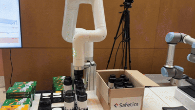 세이프틱스 기술은 로봇이 복잡한 경로를 움직일 때 인체에 가해질 수 있는 힘·압력을 계산하고, 허용 기준을 넘는 순간 자동으로 속도를 낮추거나 정지하도록 명령한다. 이는 피지컬 AI가 만든 자유로운 모션에 AI가 안전 필터를 씌우는 것과 같은 방식이다.
