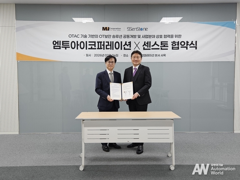 스마트팩토리 솔루션 전문기업 엠투아이가 산업용 보안 전문기업 센스톤과 AI 자율제조 환경 구현을 위한 산업용 보안 솔루션 협력에 나선다. 엠투아이는 센스톤과 산업 현장 보안 강화를 위한 업무협약을 체결하고, OT 환경에 특화된 인증 기반 보안 솔루션 공동 개발과 시장 확대를 추진한다고 4일 밝혔다.
