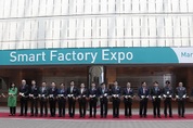 [첨단 헬로티] ▲ 3월 27일, ‘스마트공장+자동화산업전 2019'이 개막했다. <사진 : 김동원 기자> 국내 스마트공장 보급 확산 및 다가올 제조혁신 미래를 제시할 ‘스마트공장+자동화산업전 2019(Smart Factory + Automation World 2019, 이하 오토메이션월드)’가 3월 27일, 코엑스에서 3일간의 막을 열었다. 이날, 오전에 열린 전시회 개막식에는 산업통상자원부 정승일 차관, 중소벤처기업부 김학도 차관, 무역협회 김영주 회장, 전자부품연구원 김영상 원장, 한국스마트제조산업협회 김태환 회장, 테크노파크진흥원 이재훈 회장, 한국머신비전협회 이진원 회장 등이 참석해 자리를 빛냈다. 또 인화그룹 신대철 회장, 라온피플 이석중 대표, 슈나이더일렉트릭 갈민경 상무 등 스마트공장 관련 기업 관계자도 참석했다. ▲ 개막식에 참석한 정부 관계자, 스마트공장 공급기업·유관기업 관계자들이 전시회에 대한 설명을 듣고 있다. <사진 : 김동원 기자> 오토메이션월드는 30년 전통을 가진 아시아를 대표하는 산업자동화 전시회다. ㈜첨단, 코엑스, 한국스마트제조산업협회, 한국머신비전산업협회