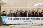 [첨단 헬로티] 첨단 과학기술 융합을 통한 국방력 강화를 위해 주요 과학기술 기관들이 뭉쳤다. 한국기계연구원, 국방과학연구소, 한국전자통신연구원, 한국원자력연구원, 한국항공우주연구원은 지난해 12월 28일 '미래 국방력 확보를 위한 연구기관장 협의회'를 가졌다. ▲ 지난해 12월 28일 한국기계연구원, 국방과학연구소, 한국전자통신연구원, 한국원자력연구원, 한국항공우주연구원의 기관장이 모여 '미래 국방력 확보를 위한 연구기관장 협의회'를 가진 후 기념 사진을 찍고 있다. 이 협의회는 첨단 과학기술에 기반한 미래 국방력을 확보하기 위한 활동을 주로 하게 되는데, 국가과학기술연구기관 간 협의체를 결성하고자 연구기관장이 한자리에 모인 것은 이번이 처음이다. 이번 협의는 2017년 12월 18일 과학기술 기반 국방역량 강화를 위한 국방부-과학기술정보통신부 간 업무협약(MOU) 체결 시, 양 부처 장관의 논의과정에서 과학기술분야 연구기관장 간의 협의체를 구성하는 방안이 제안됨에 따라 연내에 실질적인 협력의 초석을 마련하고자 추진됐다. 업무협약 당시 양 부처는 그간 독립적으로 추진되어 온 국가R&D의 과학기술 혁신과 국방R&D의 국방역량 확보 사이의 칸막이