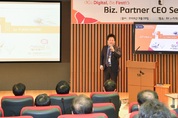 [첨단 헬로티] SK㈜ C&C(사업대표 사장 : 안정옥)는 지난 28일 경기도 성남시 분당 사옥(SK u-타워)에서 ‘2018년 상반기 BP사 CEO 세미나’를 개최했다. 회사에 따르면, 이날 세미나는 에이브릴(Aibril), 클라우드 제트(Cloud Z) 등 디지털 트랜스포메이션(Digital Transformation, 디지털 전환) 사업 추진 현황을 소개하고 BP사들과의 실질적 DT 사업 협력 방안에 대한 논의의 자리로 구성됐다. SK㈜ C&C는 이날 BP사들이 자사 솔루션 및 시스템에 연계해 신규 DT 사업 창출이 가능한 인공지능 서비스 ‘에이브릴’의 주요 API(Application Program Interface)를 비롯해 다양한 인공지능 솔루션과 플랫폼을 소개했다. BP사와 협력해 다양한 산업 분야에서 기 적용중인 ▲홈쇼핑 자동 주문 ▲채용 서류 심사 등의 성공사례 발표를 통해 BP사들로부터 큰 주목을 받았다. 실제로 ㈜퍼니웍 테크놀로지는 에이브릴의 대화 API를 활용한 인공지능 챗봇 ‘에어챗 비즈(AIR Chat Biz)’를 활용한 공공 및 기업 고객 확보 사례를