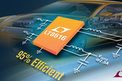 듀얼 동기식 모놀리식 스텝다운 스위칭 레귤레이터(LT8616)는 고효율이며 42V 입력이 가능하다. 이 제품의 듀얼 채널 설계는 2.5A 및 1.5A의 독립적인 연속 전류에서 0.8V로 낮은 출력까지 제공한다. 듀얼 채널 동기식 정류 토폴로지는 최고 95% 효율을 제공하고, Burst Mode® 동작은 무부하 대기 상태 6.5㎂에서 대기 전류를 유지한다. 스위칭 주파수는 200kHz∼3MHz 사이에서 프로그램되며 이 주파수 범위 전체에서 동기화된다. 김희성 기자 (eled@hellot.net)