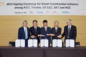 [첨단 헬로티] 내달 연천 SOC실증센터에서 국내 최초 ‘5G 스마트건설’ 현장 생산성 검증 실시...▲드론 활용 측량 ▲AI 기반 운영 ▲IoT 측위센서∙실시간 영상 관제 등 접목 SK텔레콤이 5G ‘퍼스트 무버(First-Mover)’로서 5G 기술 기반의 스마트 건설 현장 혁신을 위해 속도를 낸다. SK텔레콤(대표이사 사장 박정호)은 한국건설기술연구원(원장 한승헌), 현대건설기계(대표이사 공기영), SK건설(대표이사 사장 안재현), 트림블(Trimble, 대표이사 스티븐 W. 베르글룬드)등과 함께 '5G 기반 스마트 건설' 기술 혁신을 위한 업무 협약을 체결했다고 2일 밝혔다. 5개 기업∙기관은 건설현장 설계부터 운용∙관리에 이르는 전 과정에 5G∙AI 기반 패러다임 전환 필요성에 뜻을 모으고 전방위적 협력에 나선다. 연12%씩 급성장하는 세계 스마트 건설 시장에서 국가 기술 경쟁력을 확보하기 위해서다. 이번 협약은 작년 12월 SK텔레콤과 현대건설기계, 트림블 등 3개사가 맺은 업무 협약의 주체와 범위를 확대한 것이다. 이번에 한국건설기술연구원(과학기술정보통신부 산하