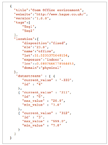 그림 5는 REST API의 예를 보여준다. REST API는 http 프로토콜을 사용하고, 명령과 인자 전달에 있어 XML과 같은 형태로 관리할 수 있기 때문에 쉬운 접근 방법을 제공한다. 리스트 4는 아두이노에서 REST API를 사용하여 서버와 통신하는 예제이다. 복잡한 코드 구성없이 서버와 통신하는 것을 보여준다.