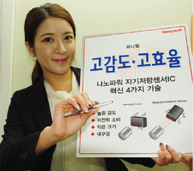 한국하니웰의 나노파워 자기저항센서(Magne-toresistive Sensor ICs)는 기존 리드스위치(Reed Switch) 대비 높은 감도와 저전력소비, 작은 크기, 내구성 등 4가지 혁신적인 기술을 앞세워 MR 센서 분야의 주목을 끌고 있다. 또 기존 홀 이펙트 센서와 달리 센싱 물체와 평행 방향으로 자기 감지가 이루어지기 때문에 감도가 더욱 뛰어나다.