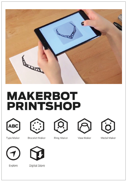 또다른 메이커봇 3D프린터만의 우월한 기능은 누구나 쉽게 3D도면을 얻을 수 있다는 점이다. 3D디자인을 하지 못하더라도 누구나 원하는 그림을 그리고 메이커봇 프린트샵 앱에서 촬영하고 도면을 조정하고 출력까지 쉽게 할 수 있다.
