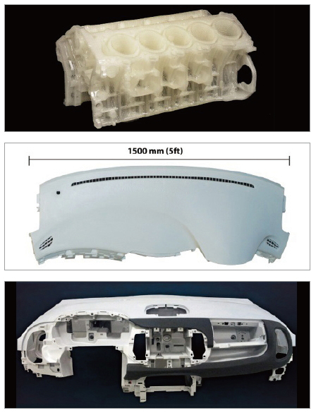 ProX950는 광조형 기술(SLA)을 이용하여 액상수지를 레이저로 경화시키며 적층하는 방식의 프린터이다. 2개의 레이저가 동시에 작업하며 놀라운 속도로 몇 주가 아닌 단 며칠 안에 풀 사이즈 대시 보드를 출력한다. 3D 출력 기술에 최고의 디테일, 정밀도, 에지 정의를 가진 대형 모델 출력을 하며, 솔기 및 이음새가 없는 단일 모델이다. 또한 사용하지 않은 모든 재료는 프린터 안에 남아 다시 재사용이 가능하여 재료의 효율성을 높일 수 있다.