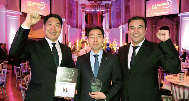 이번 수상은 KT가 선보인 ▲GiGA LTE(이종망 융합기술) ▲3CA LTE (3개 대역 주파수 묶음기술) ▲LTE 무전 통신 ▲eMBMS(LTE 기반 동시 동영상 전송: evolved Multimedia Broadcast and Multicast Service) 등 핵심 기술들이 글로벌 LTE 네트워크 발전에 기여한 공로로 인정받은 것이다.