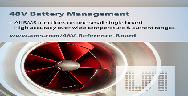 ams는 지난달 소형, 고성능의 간단한 48V 자동차 배터리 모니터링 시스템에 적합한 레퍼런스 보드를 출시했다. 이 보드는 차세대 48V 리튬 배터리 시스템, 그리고 승용차, 상업용 경차, 전기 스쿠터, 모터바이크와 같은 듀얼 48V/12V 배터리 시스템에서 사용하는 데 적합하다.