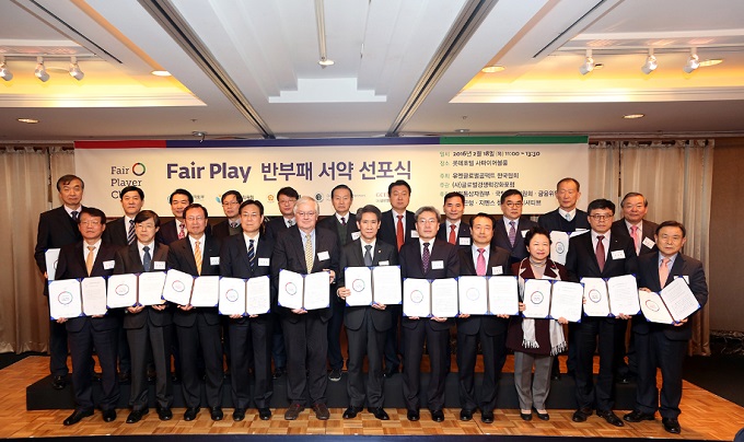 유엔글로벌콤팩트 한국협회가 주최하고 글로벌경쟁력강화포럼이 주관하며 지멘스청렴성이니셔티브, 산업통상자원부, 금융위원회, 국민권익위원회, 세계은행이 후원한 이번 선포식에서 부패근절 민관협력 프로젝트 ‘페어플레이어클럽(FPC)’의 지난해 1차년도 주요 성과가 공유됐다. 이와 함께 KT, LG전자, 국민은행, 현대상선 등 국내 다양한 산업군의 60여개 기업 대표 및 임직원들이 참석해 준법·윤리경영 준수를 선포했다.