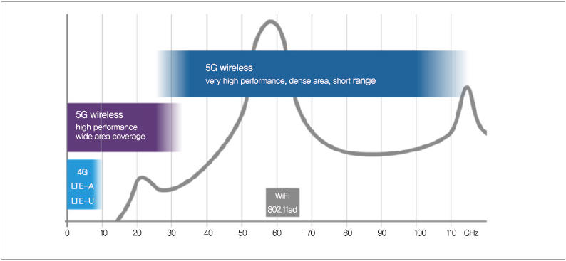 ▲ 그림 1. 5G에서는 높은 주파수 대역을 이용하게 될 것으로 보인다