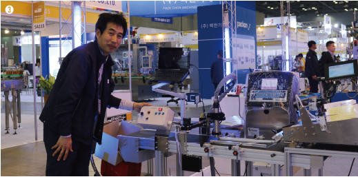 코마스팩의 기술영업부 문석민 차장은 “식품, 제약 분야에서 많이 사용되고 있는 코마스팩의 오토 피더는 자동 마킹 후 비전 검사를 통해 완전한 제품만 통과시킨다. 또한 로봇 시스템의 경우 오픈소스인 아두이노 기반이므로 저렴하게 필요한 기능만 구현할 수 있으며 프로그램, 모듈 등은 코마스팩에서 직접 개발한 것이다. 작업자가 수동으로 쉽게 세팅할 수 있는 등, 기능은 외산 제품보다 뛰어난데 가격은 1/3 수준이라는 점 때문에 전시장에 오신 많은 분들이 관심을 가져 주셨고, 몇 대는 현장에서 판매되기도 했다”고 설명했다.