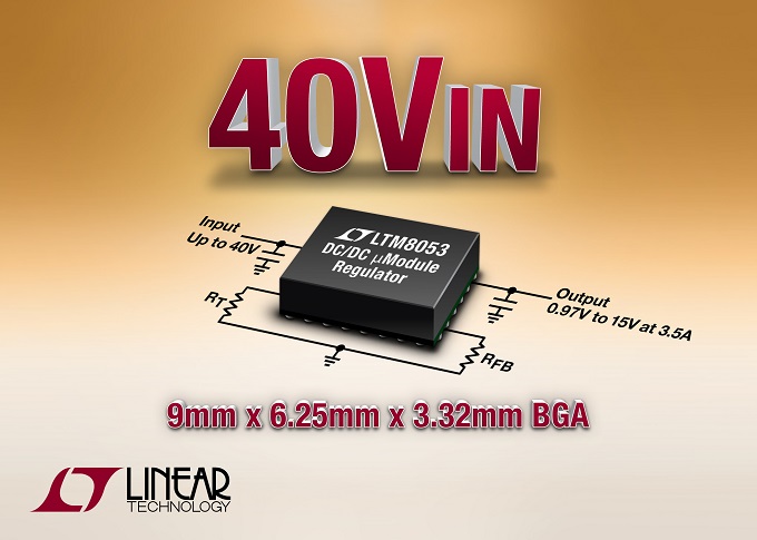 리니어 테크놀로지 코리아(대표 홍사곽)는 최대 40V 입력(절대 정격 42V) 의 µModule (파워 모듈) 스텝다운 레귤레이터 'LTM8053'를 최근 출시했다.