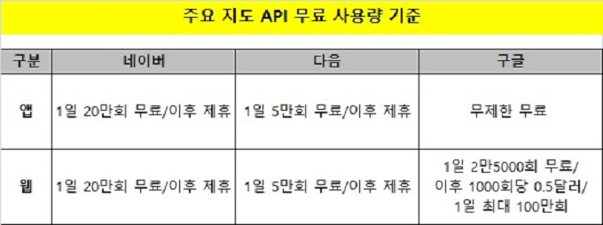 ▲ 네이버의 변경된 지도 API 정책 [표=네이버]