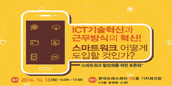 미래창조과학부는 이와 관련 한국정보화진흥원과 함께 ‘ICT 기술혁신과 근무방식의 혁신! 스마트워크 어떻게 도입할 것인가?’ 라는 주제로 정책 토론회를 18일 한국프레스센터에서 개최했다.