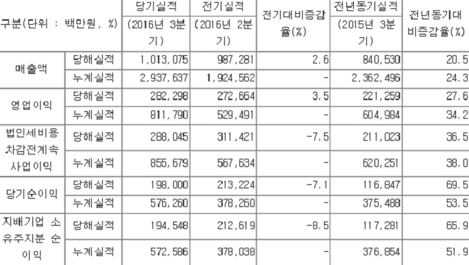▲ 네이버 2016년 3분기 매출실적 [사진=네이버]