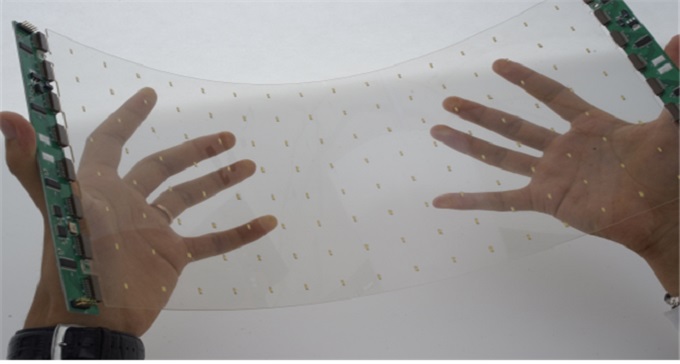 ▲ 서울대학교의 투명 LED 필름 [사진=산업통상자원부]