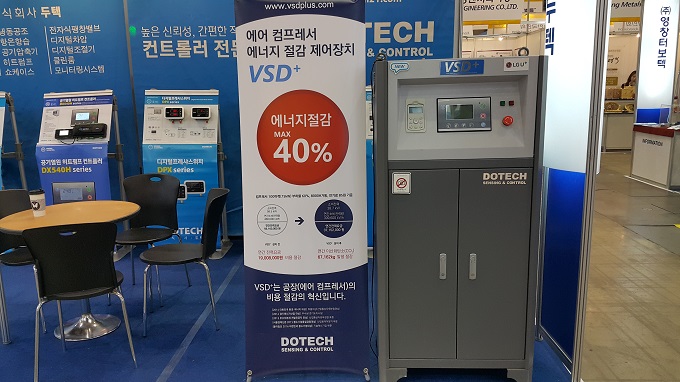 한국기계전에 참가한 두텍은 LG유플러스와 공동 마케팅 MOU를 체결한 공기 압축기 에너지 절감 제어장치 VSD+를 출품해 관람객들의 관심을 모았다. 이 장치는 기존 산업용 에어 컴프레서에 간단히 설치해 제어 방식(시퀀스 등)을 인버터 제어 기반의 VSD(Variable Speed Drive: 가변 속도 제어) 방식으로 변환함으로써 에너지 효율을 최대 30~40%까지 높이는 신개념 제어장치이다.