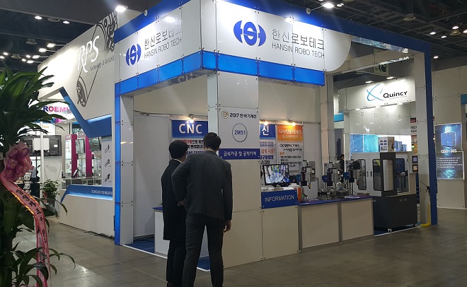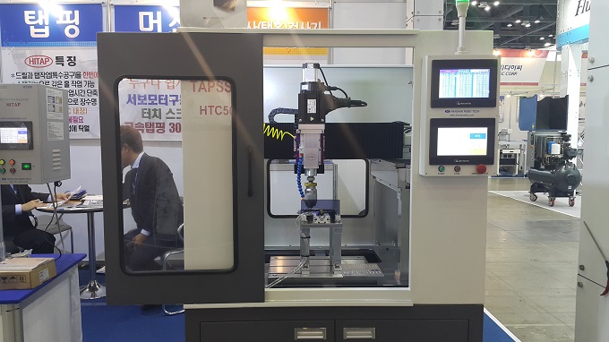 한국기계전에 참가한 한신로보테크는 태핑머신, 태핑센터를 선보였다. 태핑센터(미니) HTC500 모델은 초정밀 태핑을 위해 설계된 소형 사이즈로 드릴, 태핑, 엔드밀, 커팅 등의 기본 기능에 전체 서보 모터(x, y, z축)로 구성되어 성능이 우수하며 휴대폰, 자동차, 전기전자, 통신, 금형부품 등에서 높은 기능을 발휘한다.