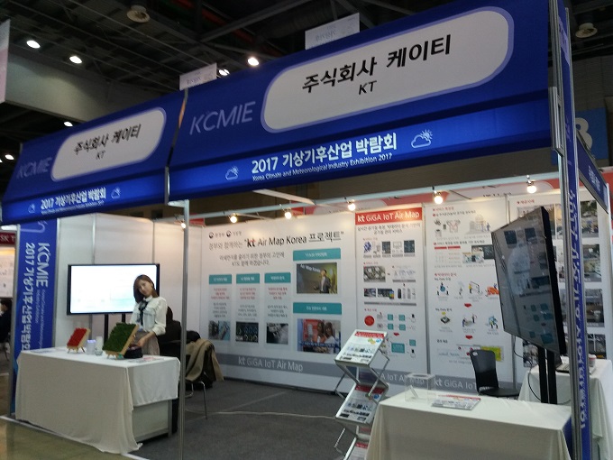 kt는 11월 15일부터 11월 17일까지 일산 킨텍스에서 열린 ‘2017 기상기후산업 박람회(Korea Climate and Meteorological Industry Exhibition 2017)’에 참가해 GiGA IoT Air Map 서비스를 소개했다.